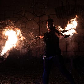Kraftvolle und emotionale Feuerkunst mit beeindruckenden Effekten, professioneller Bühnenpräsenz und ausdrucksstarker Performance.