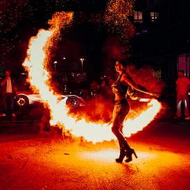 Das einzigartige Gefühl, die Hitze der Flammen bei einer Feuershow zu spüren, ist schwer in Worte zu fassen.