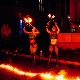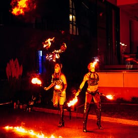 Haben Sie noch Fragen zum Ablauf einer Feuerspucker-Show? Dann schauen Sie gerne in unseren FAQ-Bereich oder schicken Sie uns doch eine Mail mit ihren Fragen, bevor Sie unsere Feuerspucker-Gruppe “Hardrock-Fireshows” aus Dortmund buchen. Für 20-25 Minuten tauchen Sie ein in ein Meer aus Farben, Licht und Klang, das Sie in seinen Bann ziehen wird. Die spektakuläre Show ist so konzipiert, dass sie das Publikum in Staunen versetzt und jeden Moment unvergesslich macht. Jede Sekunde ist durchdacht, jeder Effekt präzise abgestimmt, um ein Maximum an Eindrücken zu hinterlassen.